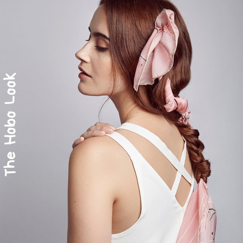 Một kiểu tóc sáng tạo hơn nhưng cũng không quá khó để thực hiện. Chúng tôi đã sử dụng một chiếc khăn lụa dài với kích thước tầm 120cm x 40cm.